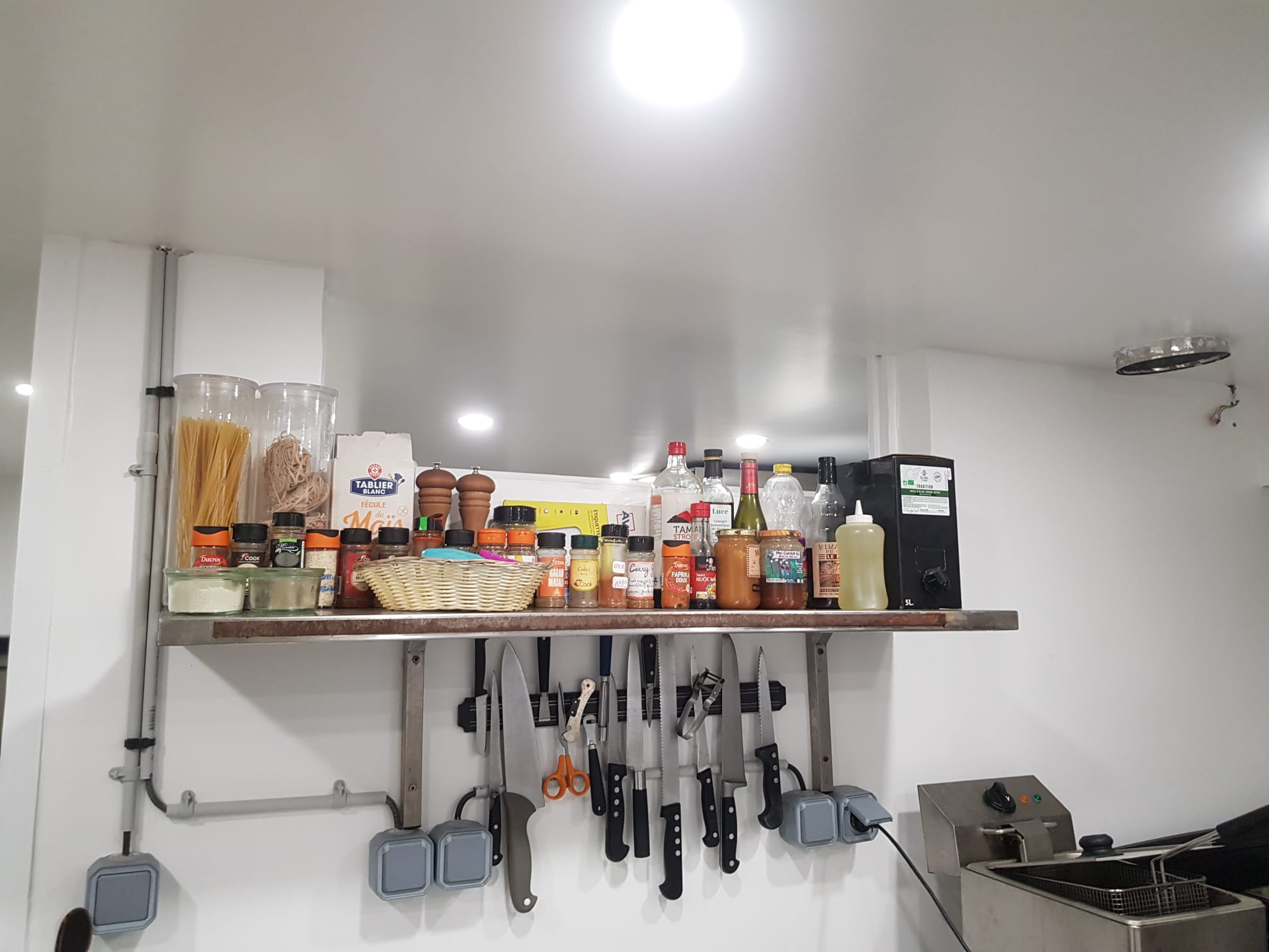 Voici ci-dessous quelques photos de notre nouvelle cuisine, toute blanche, toute belle : nouveau carrelage, nouveau plafond, nouveaux usages. C’est enthousiasmant et perturbant à la fois (on cherche nos marques 🙂 )