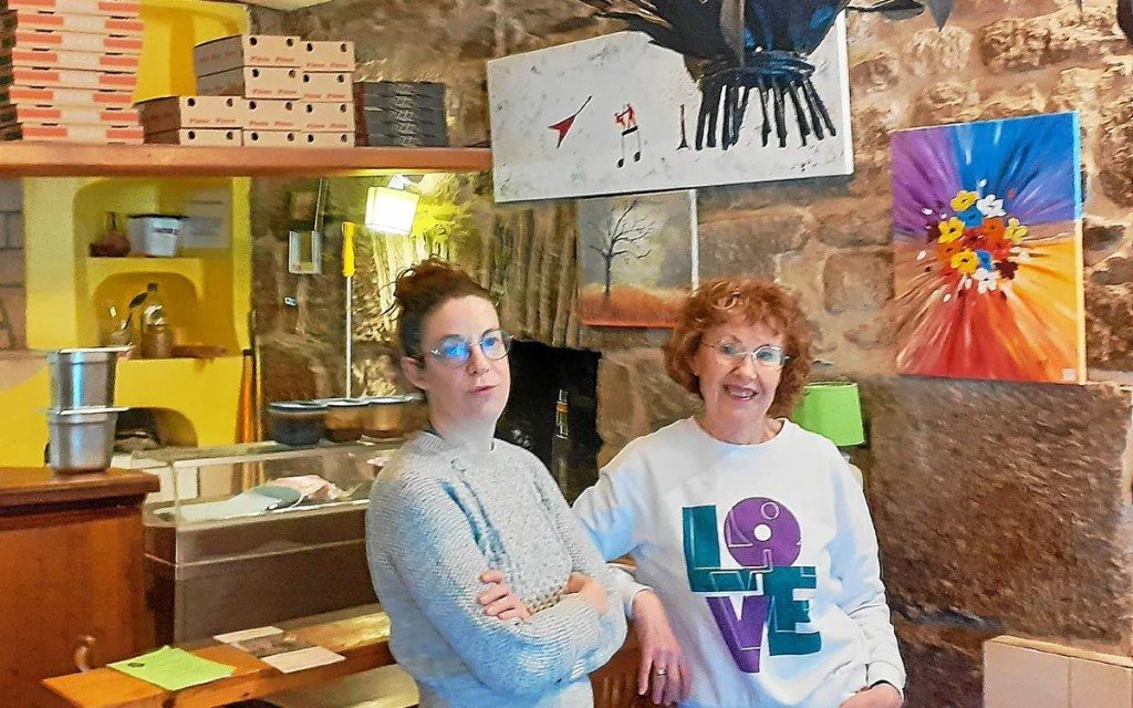 « La pizzeria Le Kumquat à Rostrenen et sa cheffe, Francine, sont connus pour permettre à des artistes locaux d’exposer leurs peintures à raison d’une nouvelle exposition tous les trimestres. Cette fois, c’est une amie et voisine de son village de Kerhir, en Plounévez-Quintin, Marylène Le Gall, qui a été invitée à accrocher de nombreuses toiles sur les murs de la salle de restaurant. Après une vie de travail en coiffure à domicile, jusqu’en 2021, Marylène s’est lancée à fond dans sa passion, la peinture. Autodidacte, elle a commencé à peindre à l’huile sur toile, mais aujourd’hui elle peint à l’acrylique sur différents supports : bois, toile, ardoise… Les sujets sont très différents au gré des envies de l’artiste (peinture abstraite, marine, fleurs, etc.), mais aussi avec beaucoup de matériaux différents sous forme de collages. L’exposition restera en place trois mois. »